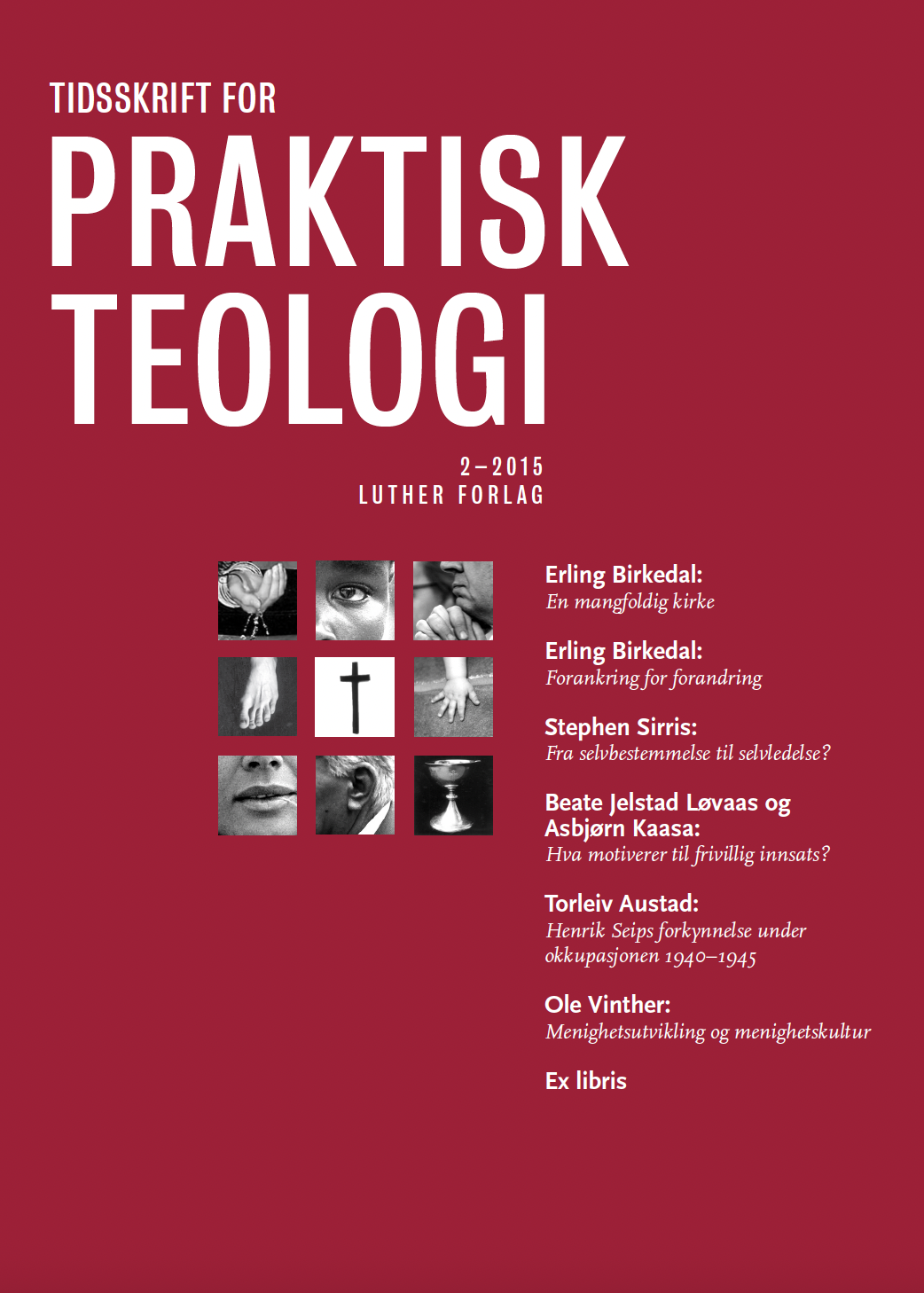Fagfellevurderte artikler. Birkedal: En mangfoldig kirke / Birkedal: Forankring for forandring / Sirris: Fra selvbestemmelse til selvledelse / Løvaas & Kaasa: Hva motiverer til frivillig innsats? / Austad: Henrik Seips forkynnelse under okkupasjonen 1940–1945.
