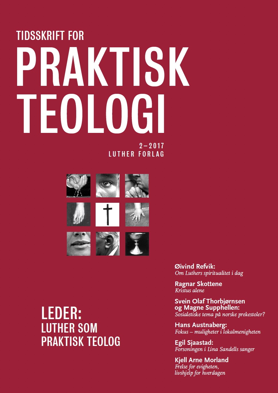 Fagfellevurderte artikler. Refvik: Om Luthers spiritualitet i dag / Skottene: Kristus alene / Thorbjørnsen & Supphellen: Sosialetiske tema på norske prekestoler? / Austnaberg: Fokus - muligheter i lokalmenigheten / Sjaastad: Forsoningen i Lina Sandells sanger.
